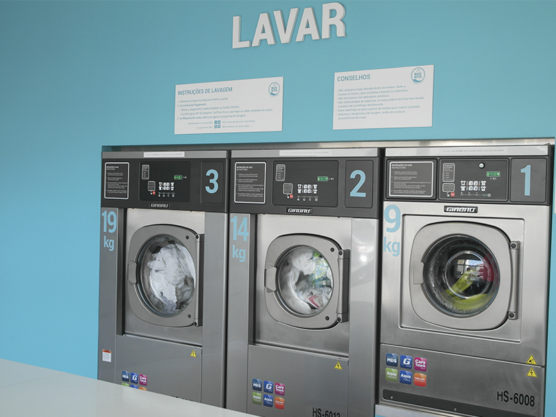 As nossas máquinas têm 2x a 4x mais capacidade do que as máquinas de lavar de nossa casa. Desta forma permite poupanças em água, energia eléctrica e tempo.